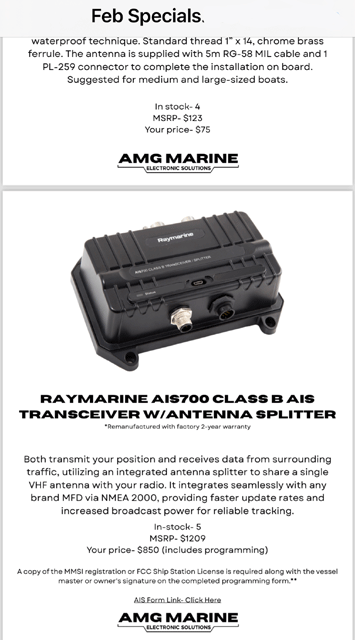 Aris from AMG in Amesbury came to our February meeting. He provides marine electrical services from electronics installed to complete rewiring of your boat. He also makes custom dash panels and switches. He is located in Amesbury . He also provides mobil service. He is willing to give discounts to association members. Give him a call to get on his spring calendar ( if spring ever comes!)